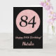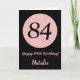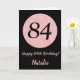 Tarjeta Feliz 84º cumpleaños oro negro y rosado Rosa