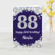 Feliz 88º Nacimiento de la Tarjeta Purpurina Azul y Plata de la Marina con nombre personalizado. Para una mayor personalización, haga clic en el botón "Personalizar" y utilice nuestra herramienta de diseño para modificar esta plantilla.