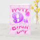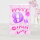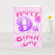 Feliz noveno cumpleaños. Color: principalmente rosa y morado. Saludo adentro: Feliz cumpleaños, que este día sea siempre especial para recordar.