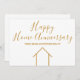 Esta tarjeta plana moderna de aniversario de Happy Home está hecha a medida con el nombre de su compañía de bienes raíces bajo la tipografía chic. Estas tarjetas minimalistas blancas y doradas presentan un simple dibujo de una casa. Son perfectas para enviar a clientes anteriores que compraron una casa para recordarles que recomienden a amigos y familiares que buscan comprar o vender su hogar. La mercadotecnia de negocios inmobiliarios significa llegar a clientes repetidos y pedir sus referencias.