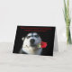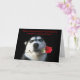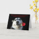 Una tarjeta de feliz aniversario súper linda específicamente para su maravillosa hija y yerno. Un husky adorable sosteniendo una rosa, ¡simplemente una tarjeta divertida!