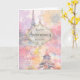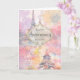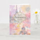 Tarjeta de aniversario femenina y romántica para "mi amor" en colores pastel suaves con un collage que presenta la Torre Eiffel, flores, hojas y otras marcas de acuarela. Perfecta para esposa, novia, prometida o quien sea el amor de tu vida.