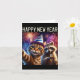 Tarjeta Feliz Año Nuevo 2026 Celebración de Gato Mapache L
