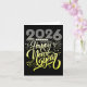Tarjeta Feliz Año Nuevo 2026, fuegos artificiales cargando