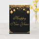 Tarjeta Feliz Año Nuevo elegante negro y dorado