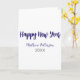Tarjeta Feliz año nuevo púrpura negro añadir nombre año si