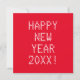 Feliz Año Nuevo personalizado rojo y blanco número año texto tarjeta de felicitación moderna