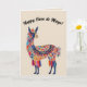Esta hermosa tarjeta presenta una ilustración de arte popular de una llama con un mensaje editable encima. En el interior hay un mensaje editable. Puedes usar esto como una tarjeta de cinco de mayo, tarjeta de cumpleaños o como una tarjeta para cualquier ocasión. Puedes cambiar los mensajes o eliminarlos para crear una tarjeta en blanco. También puedes cambiar los colores del fondo en el interior y en la parte posterior. Crédito artístico: Lynda McDaniel-Smith.