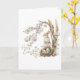 Una tarjeta de felicitación de Pascua con un ilustracion acuarela de un conejo que custodia un nido de coloridos huevos pastel de Pascua debajo de un florido árbol de primavera floreciente con flores color de agua rosa y blanca. La expresión "Pascua feliz" se coloca en la parte inferior izquierda de la tarjeta en un color que coincide con los ilustraciones. El interior de la carta se dejó en blanco para un saludo personal y un pequeño conejo marrón añadido al dorso de la carta para un toque caprichoso.