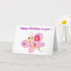 "FELIZ CUMPLEAÑOS" MARIPOSA ROSA CON FLORES