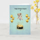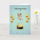 Tarjeta de felicitación de 5x7 hermosa con fondo verde; con globos de oro, un perrito y pastel de oro.
