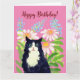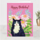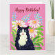 Feliz tarjeta de cumpleaños con un gato blanco y negro de pelo largo. ¡Para los amantes de los gatos y los dueños de los gatos!