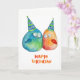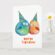Adorable tarjeta de cumpleaños feliz con 2 pequeños pájaros dibujados a mano usando gorras de cumpleaños. En blanco dentro, listo para su texto personalizado y/o personalización de la foto. © HomeStyle Design Studio