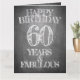 Feliz cumpleaños - 60 años y fabuloso en el aspecto de pizarra. El año, el texto y el nombre se pueden cambiar.