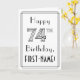 El frente de este lujoso diseño de tarjetas de felicitación inspirado en el Art Deco de los Roaring Twenties tiene el mensaje "Feliz cumpleaños 74", y un nombre de destinatario de personalizable. El número "74" de la parte delantera tiene un aspecto muy elegante y también hay un borde de varias líneas. El interior presenta un mensaje de bienvenida de cumpleaños de personalizable, o tal vez podría ser borrado y dejado en blanco si se va a escribir un mensaje a mano. Una elegante y editable tarjeta de felicitación de cumpleaños como esta podría ser una manera divertida de entregar algunos deseos de cumpleaños a alguien que está celebrando su cumpleaños setenta y cuatro. [~Z0000641]