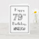 La parte delantera de este lujoso diseño de tarjetas de felicitación inspirado en el Art Deco de los Roaring Twenties presenta el mensaje "Feliz cumpleaños 79", junto con un nombre de destinatario personalizado. El número "79" de la parte delantera tiene un aspecto muy elegante y también hay un borde de varias líneas. El interior tiene un mensaje de bienvenida de cumpleaños de personalizable, o tal vez podría ser borrado y dejado en blanco si un mensaje se va a escribir a mano en su lugar. Una elegante tarjeta de felicitación de cumpleaños de personalizable como esta puede ser enviada para celebrar el cumpleaños setenta y nueve de alguien. [~Z0000641]
