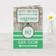 80 hoy / tarjeta de felicitación de cumpleaños. Feliz cumpleaños 80. Añadir un nombre y un mensaje. *fondo de efecto gráfico de madera. Gris y verde.