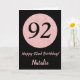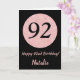 Tarjeta Feliz cumpleaños 92 oro negro y rosado Rosa