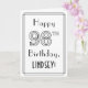 La parte delantera de este elegante diseño de tarjetas de felicitación inspirado en Art Déco de los años 1920-1930 incluye el mensaje "Feliz cumpleaños 98" y un nombre editable para el destinatario. El número "98" de la parte delantera tiene un aspecto elegante y bordeado. El interior tiene un mensaje de bienvenida de cumpleaños de personalizable, o tal vez podría ser borrado y dejado en blanco si un mensaje se va a escribir a mano en su lugar. Una elegante y editable tarjeta de felicitación de cumpleaños como esta podría ser enviada para celebrar el cumpleaños noventa y ocho de alguien. [~Z0000641]
