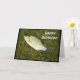 Un pez de bajo blanco muerto, fotografiado en un fondo de hierba verde, es el tema de mi tarjeta de cumpleaños "¡Feliz cumpleaños a alguien con un pequeño culo lindo!".