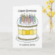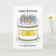 Personalizado de una torta blanca de cumpleaños decorada con flores pequeñas y varias velas multicolores. Las palabras 'Feliz cumpleaños a un periodista especial' acompañan la imagen.