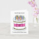 Un simple ilustracion de una torta blanca de cumpleaños cubierta con velas encendidas y con un arco rosa atado a su alrededor. Las palabras 'Feliz cumpleaños a una mamá muy especial' acompañan la imagen.