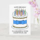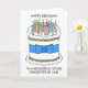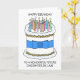 Un ilustracion personalizado de un pastel cubierto de velas encendidas y acompañado de las palabras 'Feliz cumpleaños a una maravillosa futura hija en la ley'.