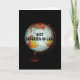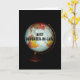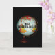 Un colorido globo antiguo, fotografiado con un fondo negro, es el tema de mi tarjeta de cumpleaños "Feliz cumpleaños a la mejor cuñada de la tierra!". "Mejor Hija en Derecho", en texto negro en la cara del globo, completa la imagen frontal de la tarjeta.