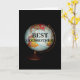 Un viejo globo de colores brillantes, fotografiado con un fondo negro, es el tema de mi tarjeta de cumpleaños "Feliz cumpleaños a la mejor madrina de la Tierra". "Mejor Madrina" en texto negro en la cara del globo completa la imagen principal de la tarjeta.