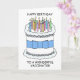 Un personalizado de un gran pastel con un arco azul alrededor y varias velas encendidas encima. Las palabras 'Feliz cumpleaños a un maravilloso vacunador' acompañan la imagen.