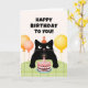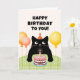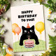 Tarjeta Feliz cumpleaños a ti con gatito negro y pastel