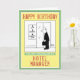 Una tarjeta de cumpleaños con un personalizado de un hombre esperando un ascensor. Los botones tienen opciones Arriba, Abajo y Dip Afortunado. Tarjeta de cumpleaños divertida ideal para un gerente de hotel o alguien relacionado con la gestión de hoteles.