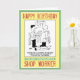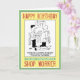 Una tarjeta de cumpleaños con un personalizado de un gerente y un trabajador de una tienda en una supertienda de bricolaje. Tarjeta ideal para cualquier trabajador de tiendas o para alguien de ventas minoristas.