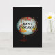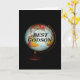 Un globo antiguo brillante-coloreado, fotografiado contra un fondo negro, es el tema de mi "feliz cumpleaños al mejor ahijado en la tierra!" tarjeta de cumpleaños. El "mejor ahijado", en texto negro en la cara del globo, termina la imagen delantera de la tarjeta.