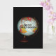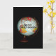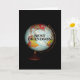 Un globo antiguo brillante-coloreado, fotografiado contra un fondo negro, es el tema de mi "feliz cumpleaños al mejor nieto en la tierra!" tarjeta de cumpleaños. El "mejor nieto" en texto negro en la cara del globo termina la imagen delantera de la tarjeta.