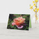 Hermosos rosas de color albaricoque adornan la parte delantera y trasera de la tarjeta.