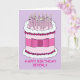 Una gran torta de cumpleaños personalizado rosa y blanco con fondo malva, con varias velas sobre ella. Las palabras 'Feliz cumpleaños Beverly' acompañan la imagen.