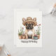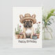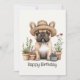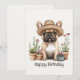 Tarjeta Feliz cumpleaños Bulldog francés jardinería flor d