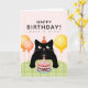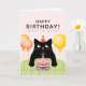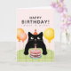 Tarjeta de cumpleaños feliz con gato negro lindo, pastel de cumpleaños y globos. Por favor revise la colección correspondiente para ARTÍCULOS COORDINADOS. ♥ 100% obras de arte originales de PUPSIKU STUDIO. Productos únicos.