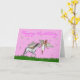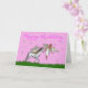 Tarjeta de cumpleaños feliz diseñada con una mágica hada y un unicornio pegaso místico en un campo verde sobre un fondo rosa, perfecta para una niña o mujer. Más productos con este diseño están disponibles en mi tienda.