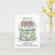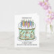 Un ilustracion sencillo de pastel de cumpleaños decorado con velas encendidas en la parte superior, con imágenes de conejitas y zanahorias por los lados. Las palabras "Deseándote un feliz cumpleaños de Pascua" acompañan a la imagen, que está colocada en un fondo blanco.