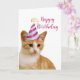 Si te gustan los gatos, entonces te encantará esta tarjeta de cumpleaños de tu gato lindo. Esta tarjeta presenta a un adorable gato atigrado naranja que lleva un sombrero de cumpleaños. Hay un saludo de tu gato dentro que puedes personalizar con tus propias palabras.