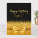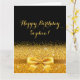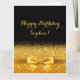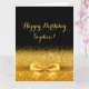Tarjeta Feliz cumpleaños dorado arco con brillo en negro