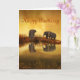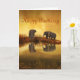 Hermosa foto de un grupo de elefantes asiáticos tomada en Tailandia bajo el sol poniente. La iluminación en esta foto crea un ambiente retro vintage. Mensaje de Feliz Cumpleaños dentro.