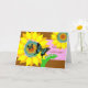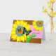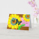Sretan rođendan, feliz cumpleaños en croata. Ilustracion de dos mariposas que vuelan alrededor de los girasoles abstractos. Diseño brillante y colorido con una mirada gráfica. Perfeccione para la naturaleza y el amante del jardín en su vida. Esquema de color de rosado, de azul, de amarillo, de marrón, y el verde. Arte, imagen, y estudios de Shoaff Ballanger del © de los derechos reservados del verso.