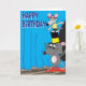 La tarjeta de cumpleaños ilustrada es perfecta para toda la familia y amigos. Texto externo: Feliz cumpleaños Ilustracion: Randoon en sombrero superior con Lil' JoJo balanceando en la parte superior. Texto interno: Es tu día especial y tú eres la estrella del espectáculo. Espero que tengas un día de diversión. Esto es de la colección The Rat Pack de Hollywood.