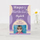 Personalice esta tarjeta de cumpleaños feliz para una nieta especial diseñada en color morado, lila y crema, con una foto de su nieto Añada un nombre y su mensaje. Feliz cumpleaños con amor