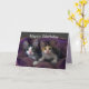 Tarjeta Feliz cumpleaños gatito par en una cama morada