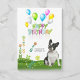 Celebra un cumpleaños especial con esta carta alegre que incluye un lindo Bulldog francés sentado en un campo de flores bajo un cielo de globos de colores. Este encantador diseño es perfecto para los amantes de la francesa y para aquellos que disfruten de un saludo de cumpleaños brillante y feliz.