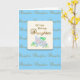 Azul con una pequeña tarjeta de cumpleaños de flores para la hija.
